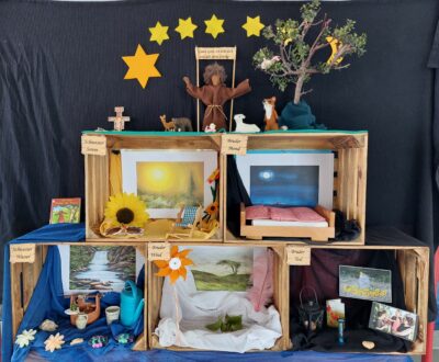 Vor genau 800 Jahren verfasste Franz von Assisi das Schöpfungslied, das heute als Sonnengesang in aller Welt gesungen und dargestellt wird. Auf unserer Homepage finden Sie eine Anregung, wie Sie den Sonnengesang mit Kindern erlebbar machen können: „Der Sonnengesang in der Holzkiste“